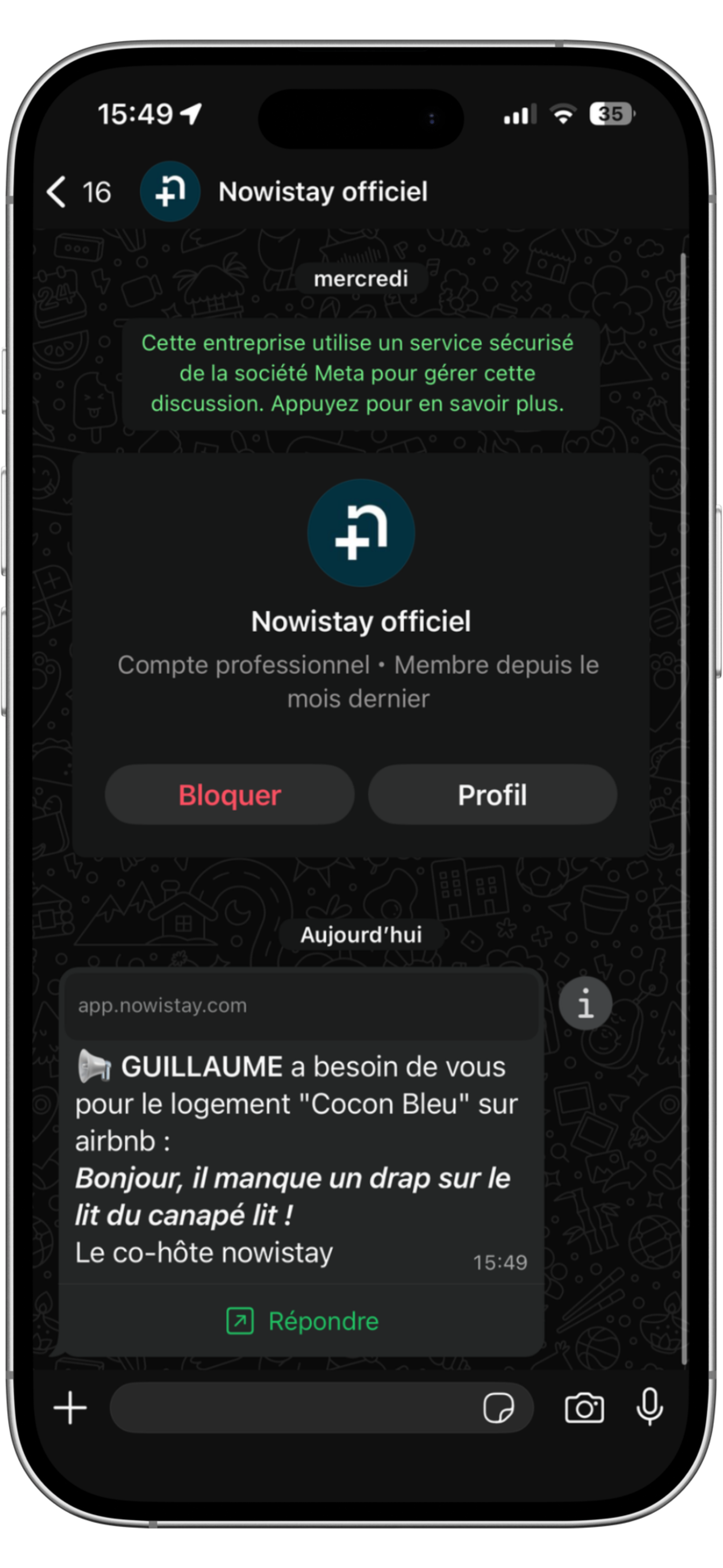 WhatsApp : réception en temps réel des messages du co-hôte IA directement sur WhatsApp.