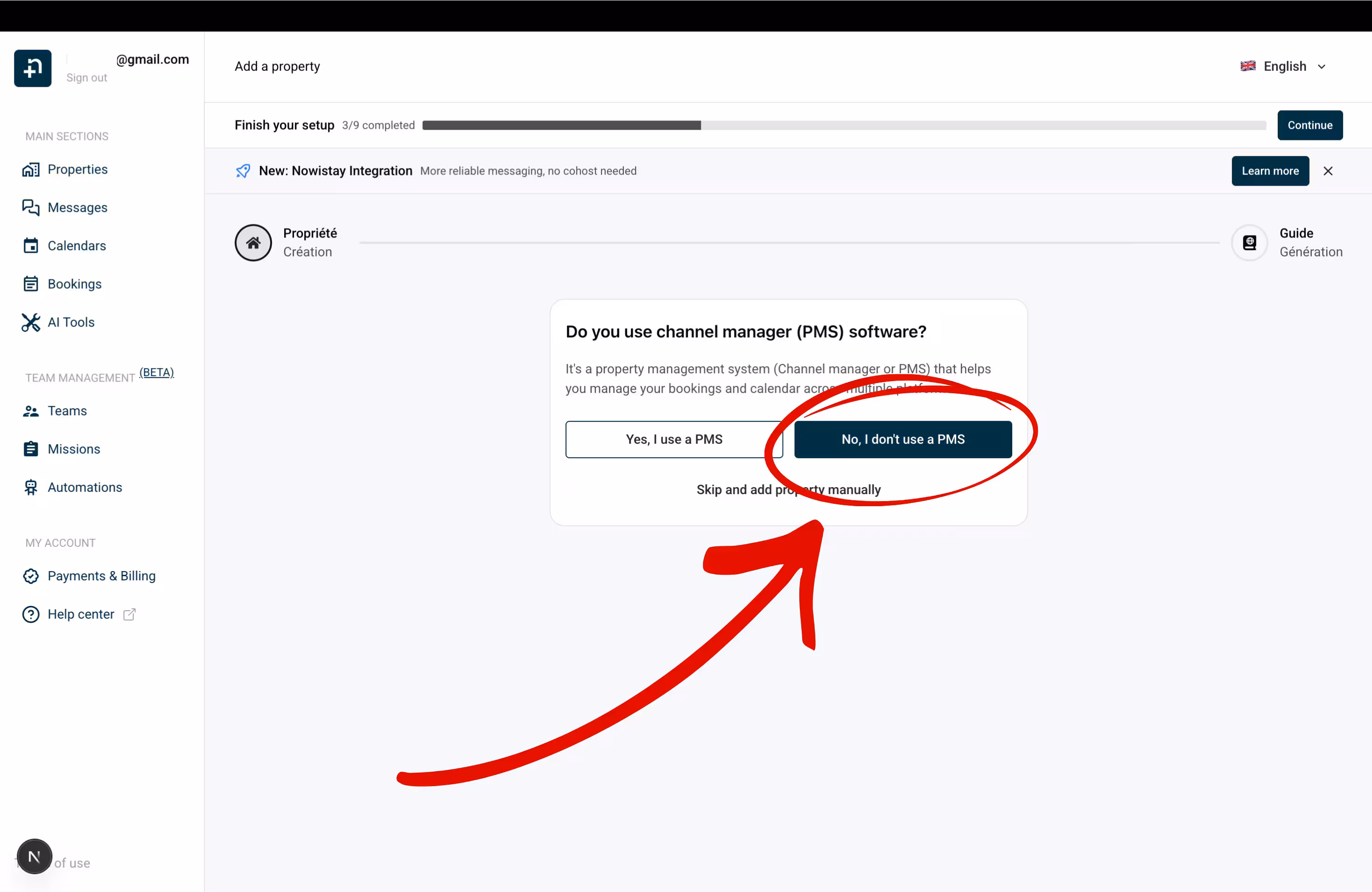 You'll be asked: "Do you use channel manager (PMS) software?". Select "No, I don't use a PMS".