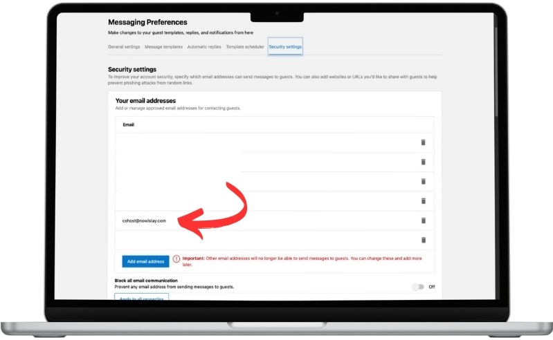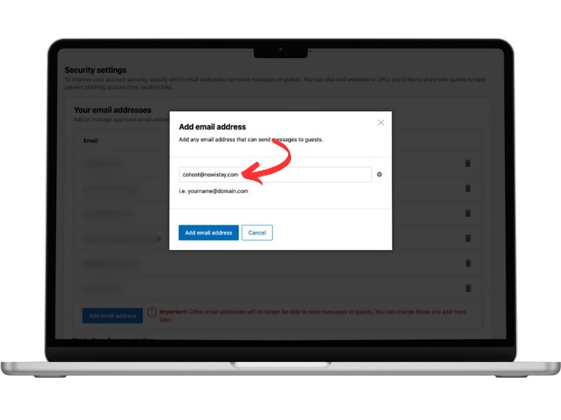Add the email address : cohost@nowistay.com