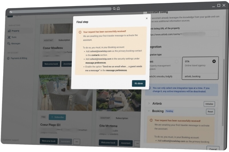Want your nowistay AI Assistant to manage messages from your Booking guests? Follow the two steps in this guide to set up your nowistay co-host correctly: